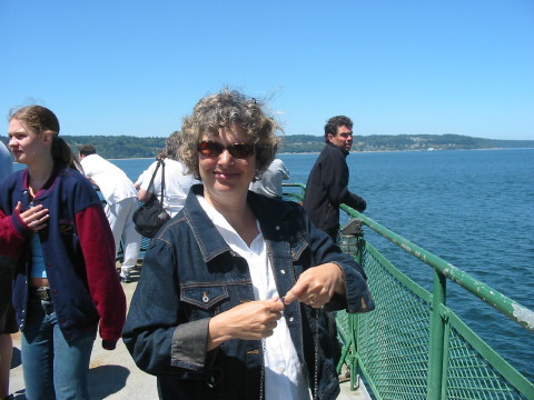 Rebecca enjoys the weather and the scenery crossing over to Clinton on the Mukilteo Ferry.