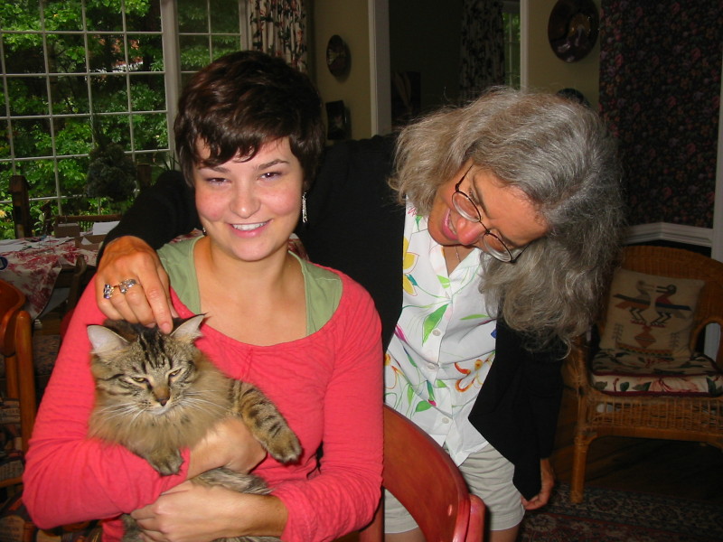Jane admires Kristen's new cat, Henri.