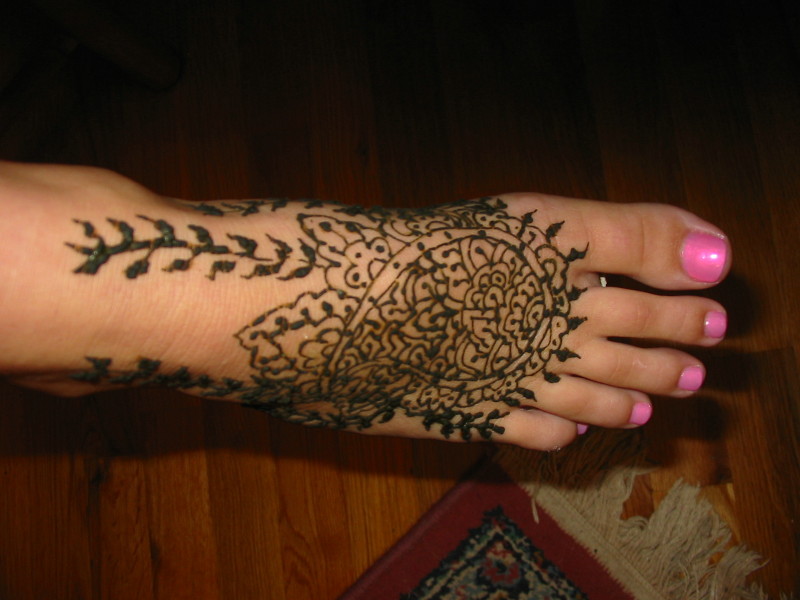 The Henna lady has decorated Julie's feet. Later she will do her hands.