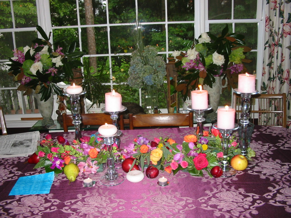 Rebecca's decorated table, ready for festivities.