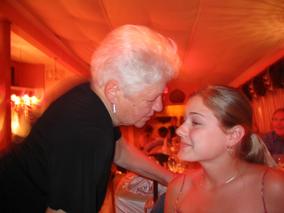 Grandmother Ruth Crow whispers in Stephanie Crow's ear. What special wisdom could she be imparting?