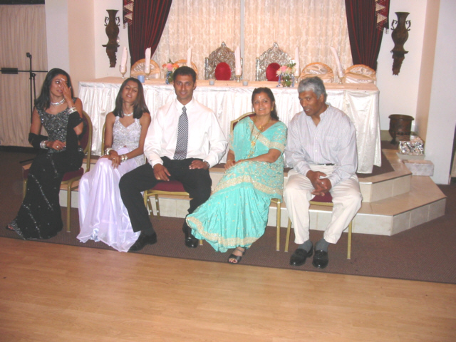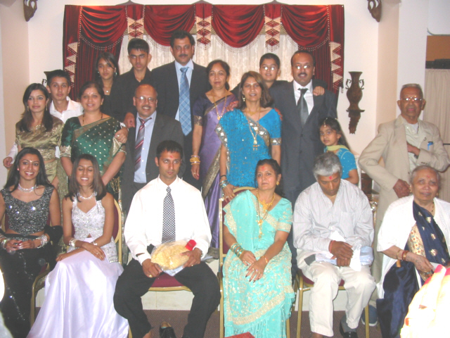 Raj's extended family poses for a picture. To the left are his two sisters. On the right are Raj's parents, Natver & Shobhna Shingadia, or the more familiar "Nat" and "Sabrina". On the far right are Virgi Hira and Bhanu Shingadia, Raj's Grandfather (in back) and Grandmother, who are from England.
